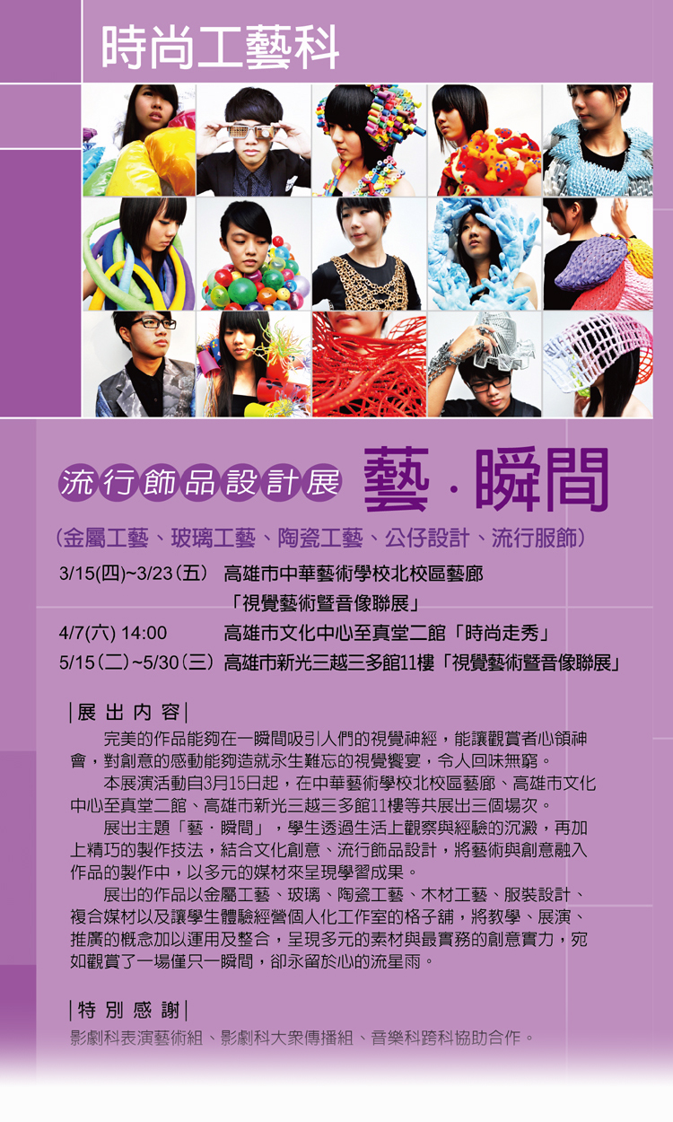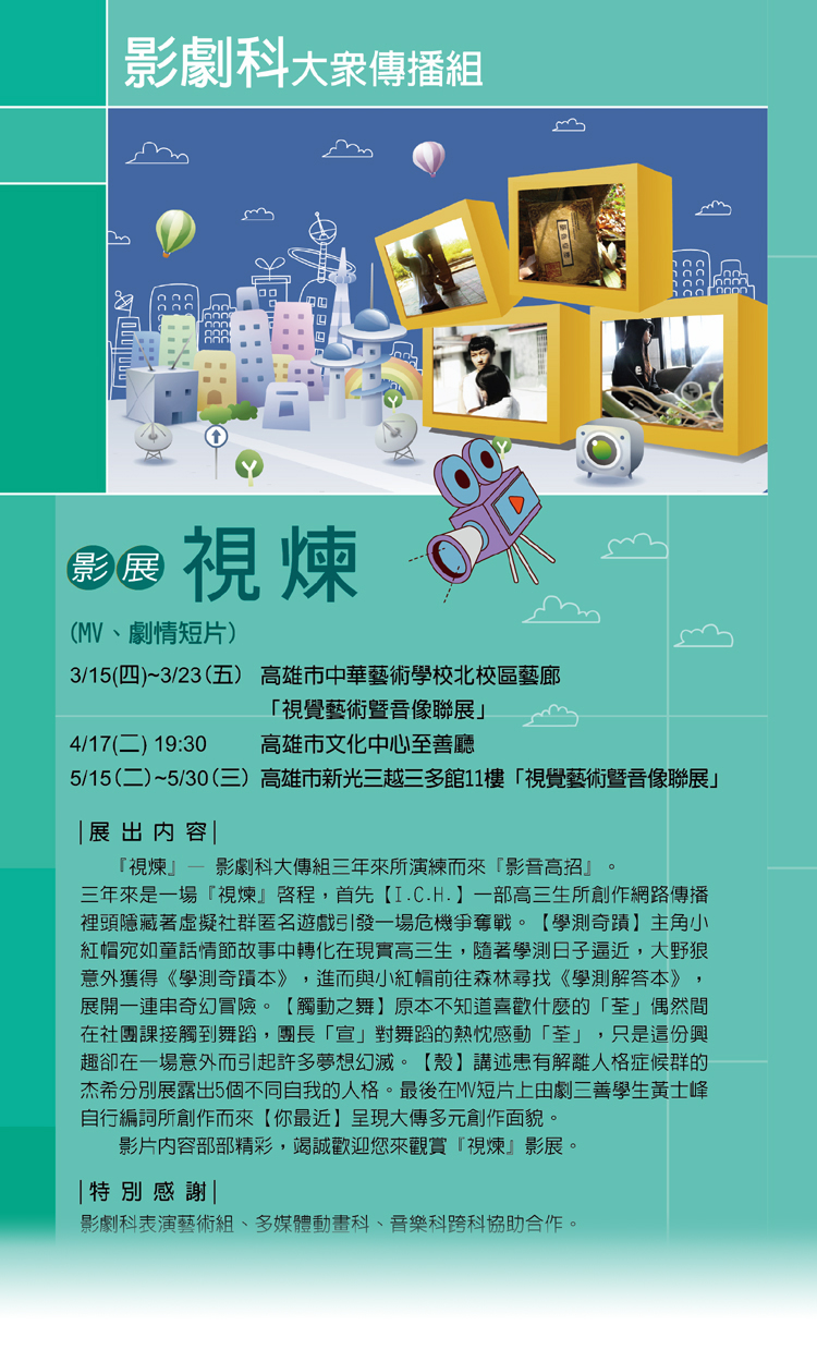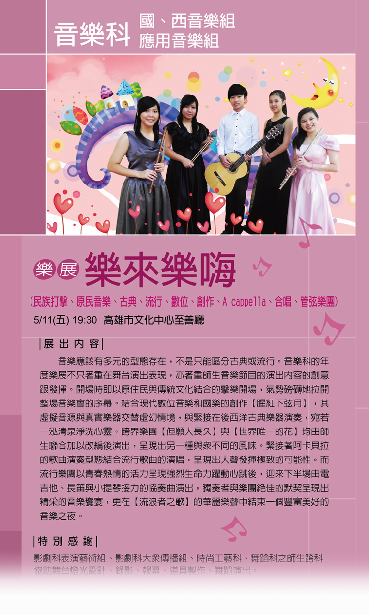 即將告別三年的高中生活,所有的酸、甜、苦、辣,就在今晚呈現給大家,同時也感謝師長們辛苦的栽培及家人的支持。 |