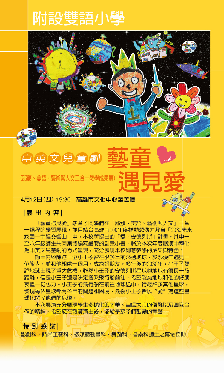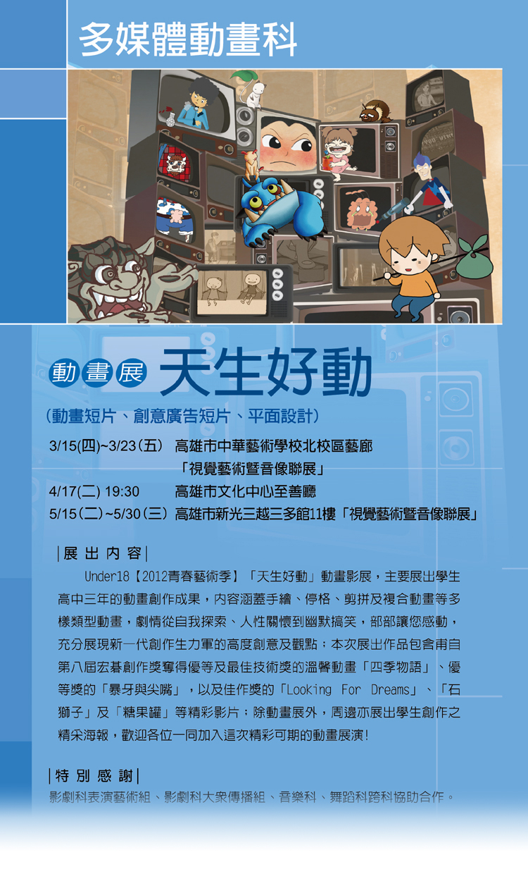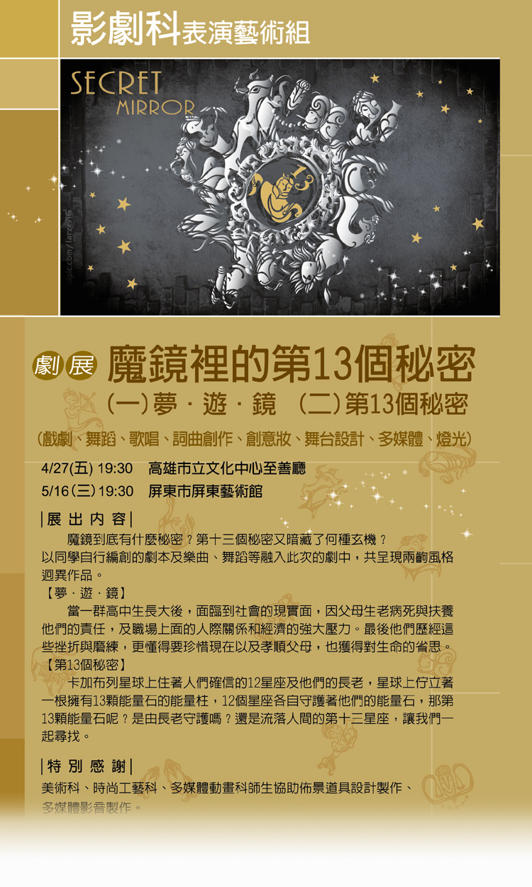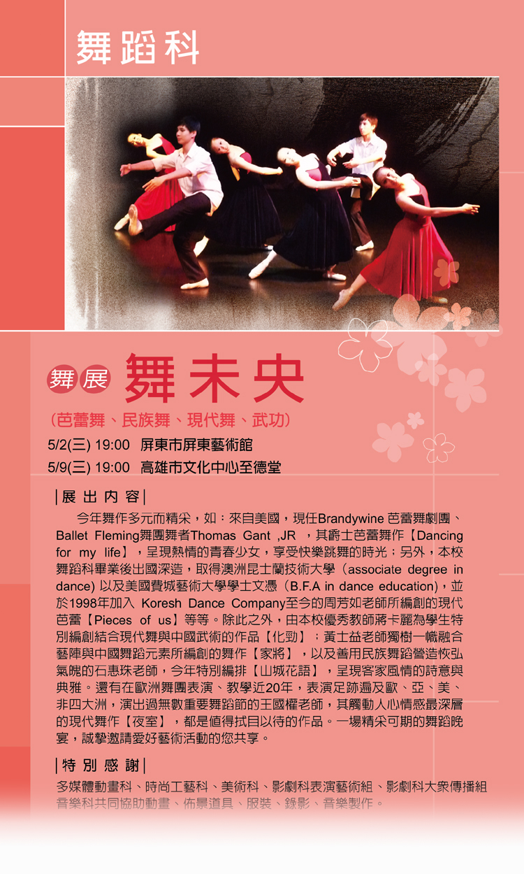即將告別三年的高中生活,所有的酸、甜、苦、辣,就在今晚呈現給大家,同時也感謝師長們辛苦的栽培及家人的支持。 |