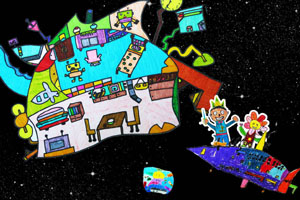 每位小孩都會有許多異想天開的想法!而那些想法總是充滿了色彩和小孩們心中的天真和單純。運用絢麗的色彩、豐富的想像營造了一個童話般的世界,充滿童真和幻想。而我相信人生最美好的一段時光莫過於童年,幻想過著童話故事的生活,象徵著夢幻般美好的一切,在異想天開的世界裡,沒有甚麼不可以。 |