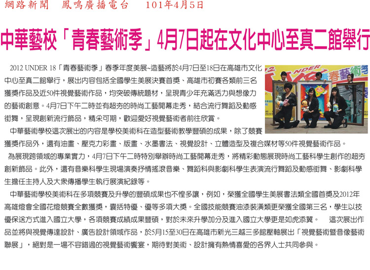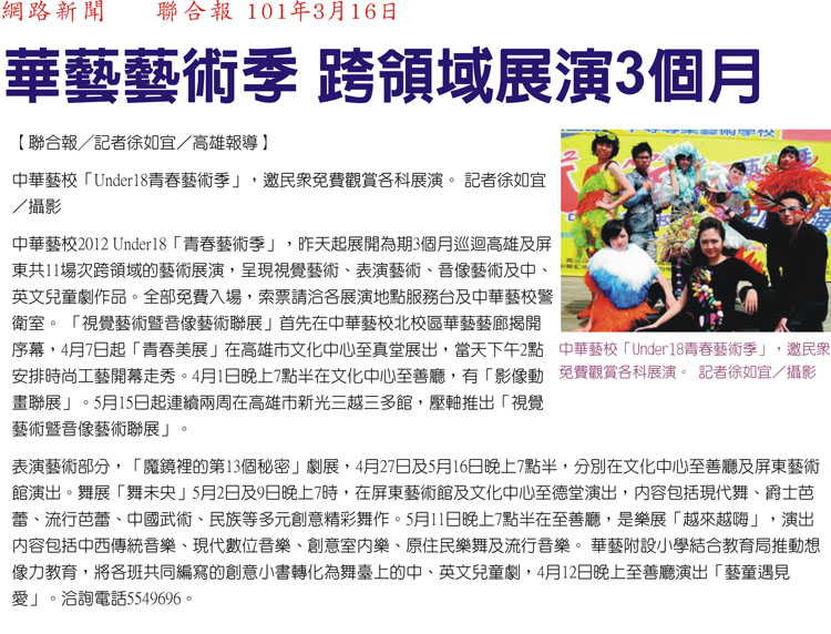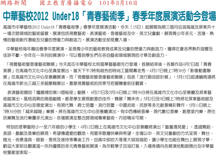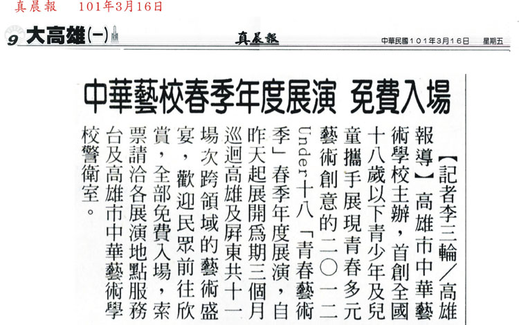 今年三、四、五月在高雄、屏東的最佳藝文景點,免費參加,不來可惜!索票地點:本校警衛室(高雄市鼓山區美術館路89號)